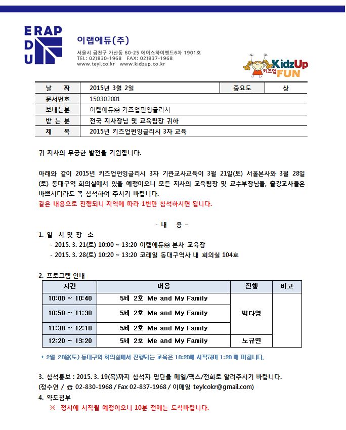 [±³À°] 2015³âµµ 3¿ù ±â°ü Á¤±â ±³À° ¾È³»