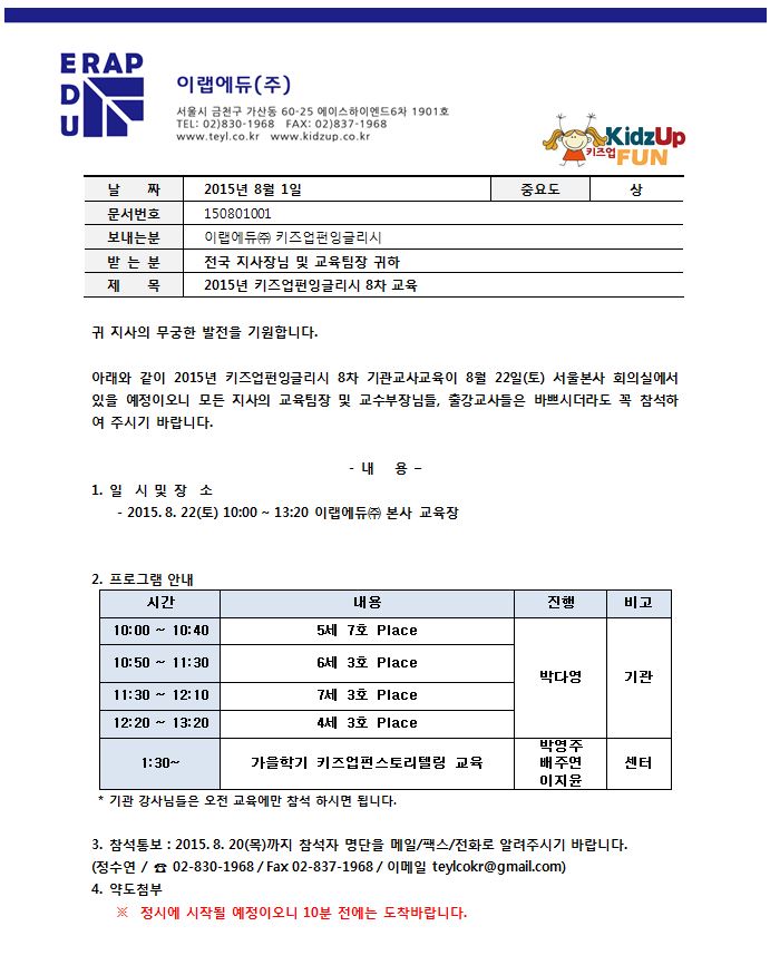 [°øÁö] 2015³âµµ 8¿ù °¡À»¼¾ÅÍ/7È£ ±â°ü Á¤±Ô±³»ç±³À° ¾È³»