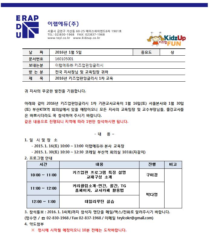 [±³À°] 2016³â 1Â÷ ±â°ü Á¤±Ô ±³»ç±³À° ¾È³»