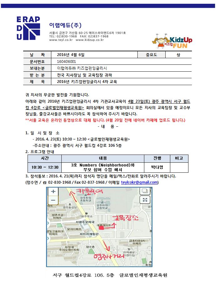 [°øÁö] 2016³âµµ 4¿ù ±³»ç±³À°¾È³»(±â°ü)